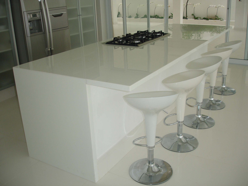 Material branco de superfície cristalizada de vidro produzido com nanotecnologia. Pode ser usado tanto para áreas externas ou internas.